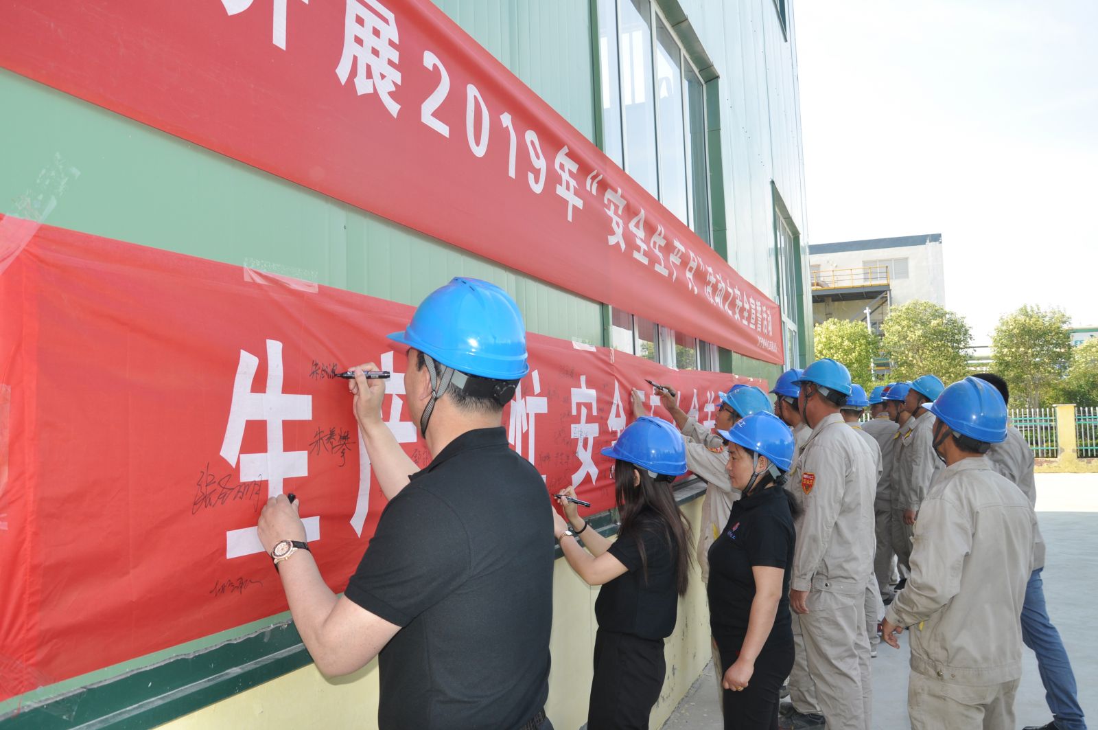会上,全体员工纷纷在宣传条幅上签上了自己的名字,并庄严宣誓,副总经理祁建新、安环部负责人刘超及车间主管、员工代表分别发言。