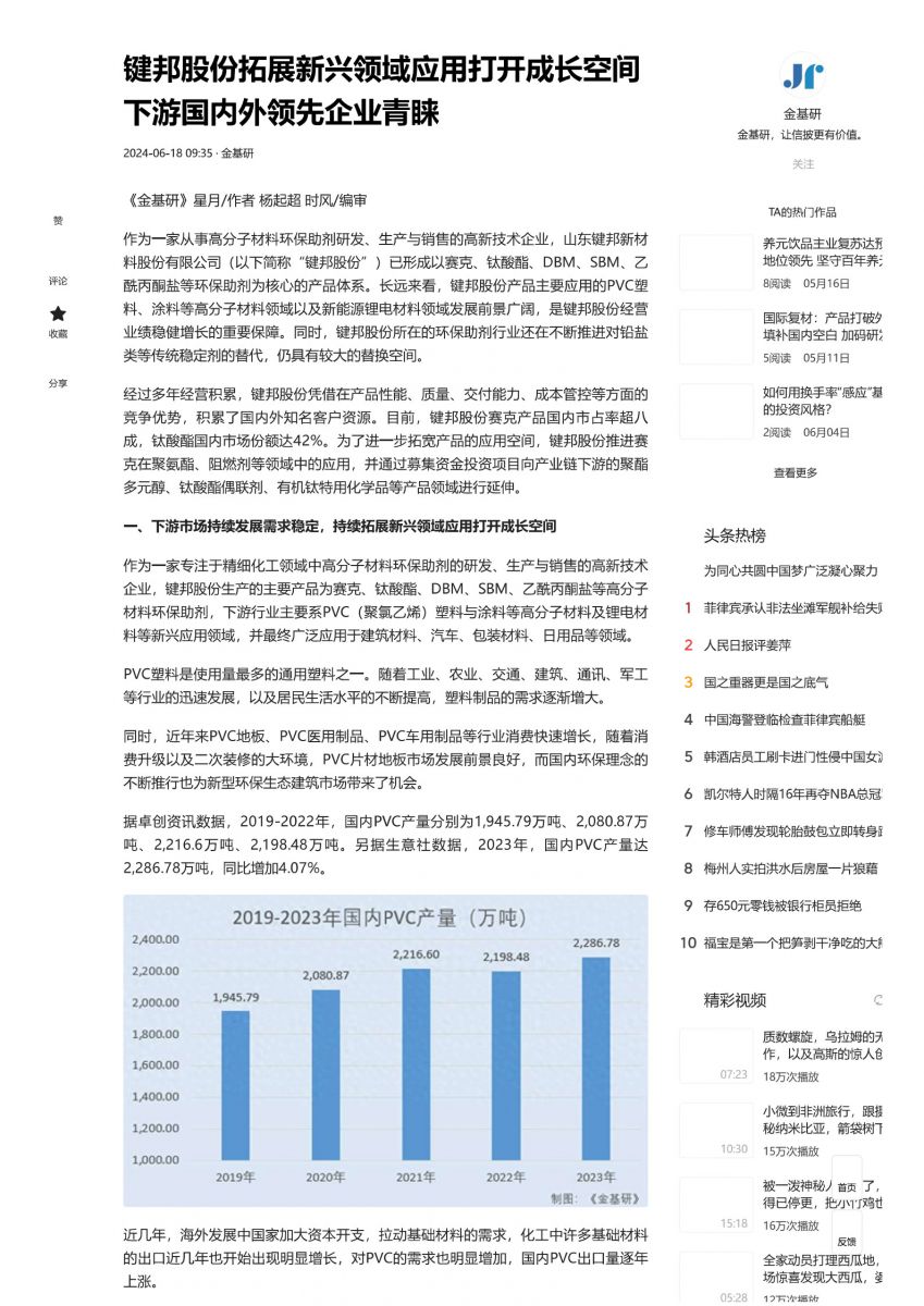 键邦股份拓展新兴领域应用打开成长空间 下游国内外领先企业青睐