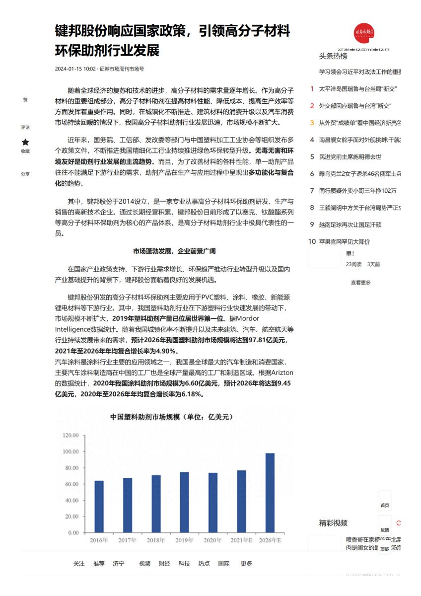 键邦股份响应国家政策,引领高分子材料环保助剂行业发展-今日头条