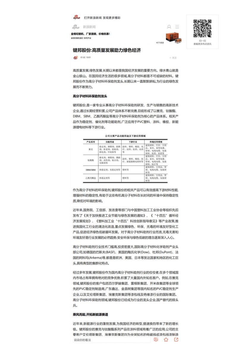 键邦股份_高质量发展助力绿色经济_新浪网