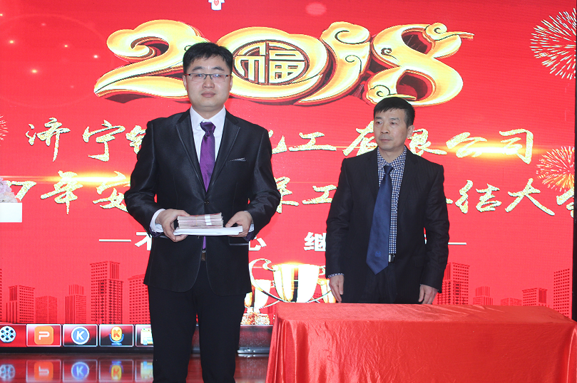 物换星移辞旧岁,风和日丽迎新春,鸡鸣祥瑞到,犬吠福禄来。2月3日上午,海川大酒店二楼宴会厅,华灯出彩、欢歌如潮、乐声激昂,到处洋溢着节日的气氛。济宁键邦化工有限公司2017年度安全环保总结大会暨2018年年会在此隆重举办,本次年会围绕“幸福都是奋斗出来的----我们一起踏踏实实干好工作”主题展开。